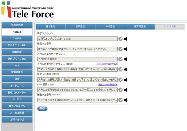 IVR設定画面